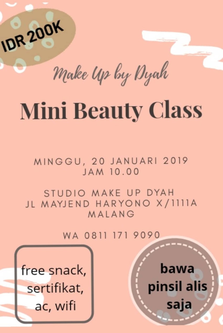 Mini Beauty Class Di Malang, Studio Make Up by Dyah – Hari Minggu 20 Januari 2019 di studio make up by Dyah kota Malang, Ebo Dyah buka kelas lagi nih. Mini beauty class dan belajarnya make up untuk diri sendiri. Setelah woro-woro di Instagram, akhirnya hihi.. akhirnya ada juga yang ikut. Alhamdulillah ada 4 wanita yang mendaftar. Ibu Susan, ibu Diah Novida, mba Sara dan mba Ida.