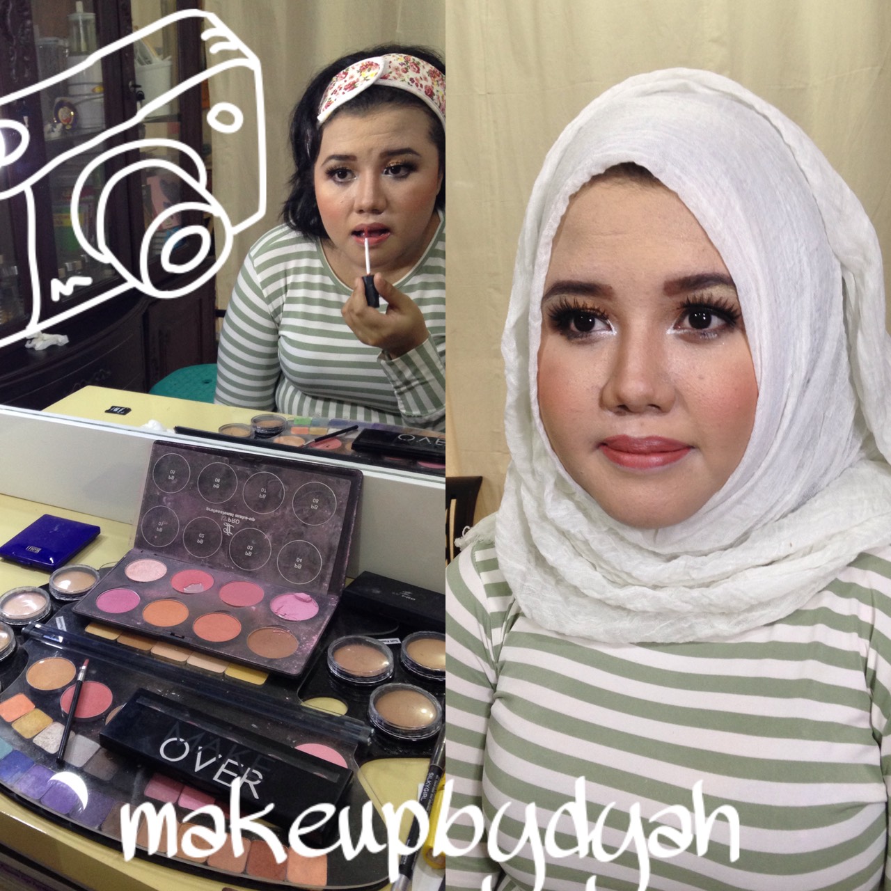 Selama kursus make up berlangsung, aku sendiri yang membimbing murid. Dari awal mulai memakaikan bando hingga terakhir. Dari cara menggunakan alat, cara memegang kuas, cara mengambil eyeshadow di pallet, cara mengaplikasikan eyeshadow, bedak, pinsil alis, semua kuajarkan tanpa ada yang disembunyikan.